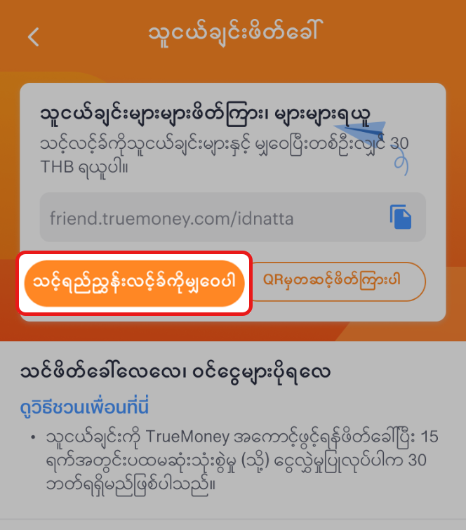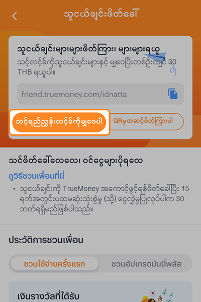 သူငယ်ချင်းကို TrueMoney ဝေါလပ်အကောင့်ဖွင့်ပြီးအသုံးပြုရန်ဖိတ်ခေါ်ပါ။သင်ဆုများရရှိပါမည်။