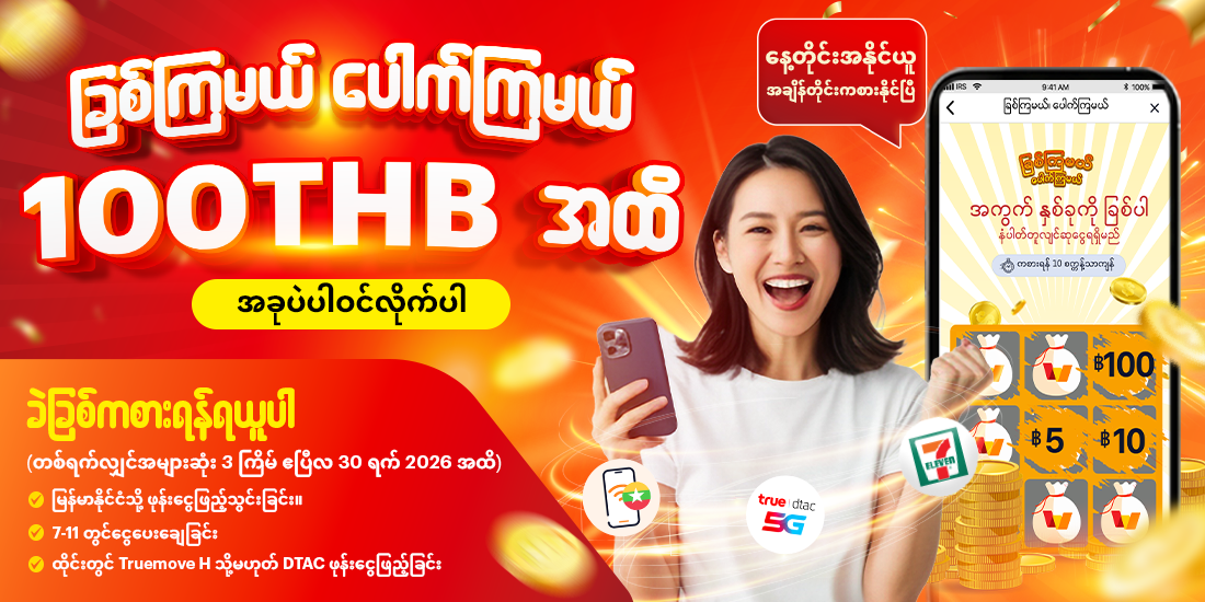ထရူးမန်းနီးရဲ့TrueMoneyခဲခြစ်ကံစမ်းမဲကဒ်ဖြင့် ကံကောင်းကြပါစေ